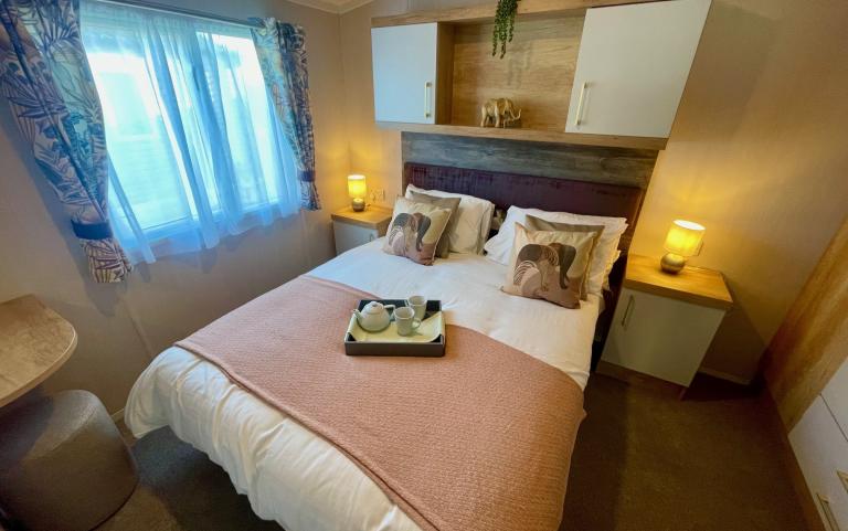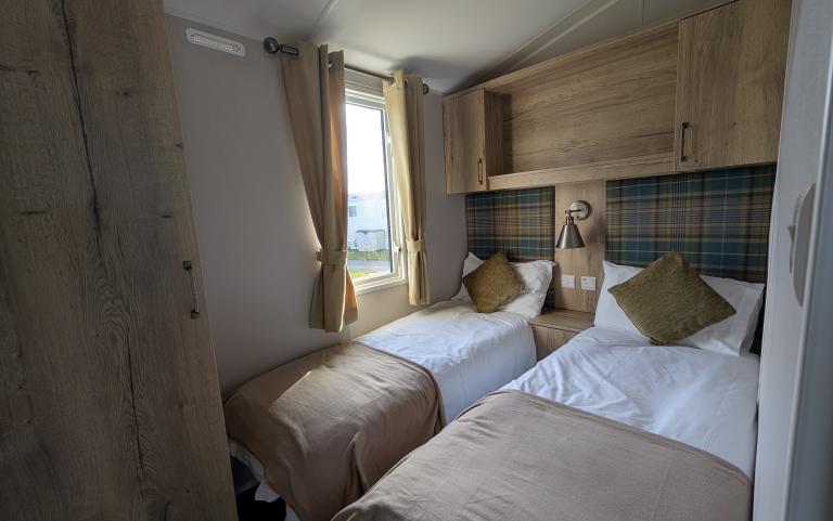 Swift Edmonton 40' x 20' 3 bed holiday lodge for sale at Silverbow Country Park with en-suite shower room to the master bedroom.