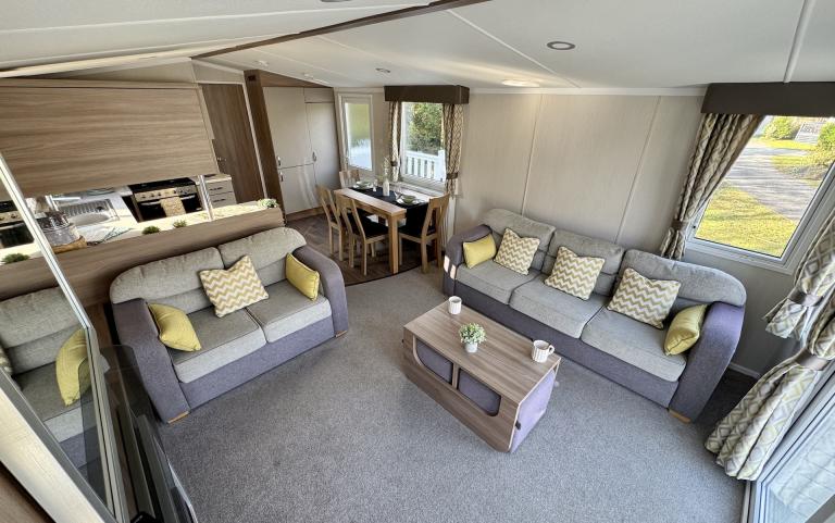 SwiftKynance 6 at Silverbow Country Park offers the Swift Bordeaux and it is simply stunning. This holiday home is contemporary in design and has vibrant soft furnishings that add fantastic injections of colour. The lounge area is spacious with comfortable seating and a stylish entertainment unit where you can sit your media devices.